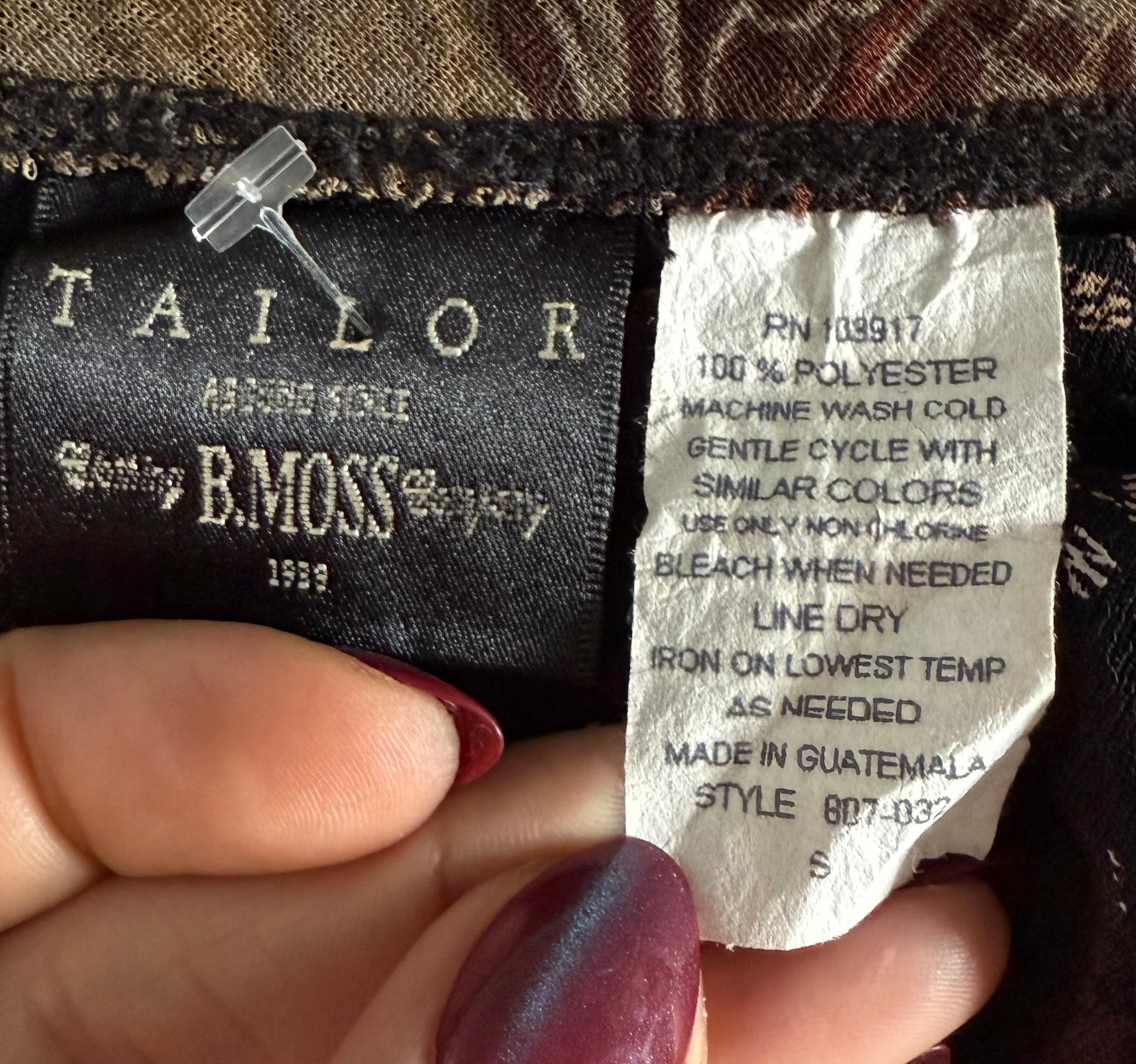 a patchwork y2k stretchy midi skirt with allover floral pattern, mesh overlay, and elastic waist.